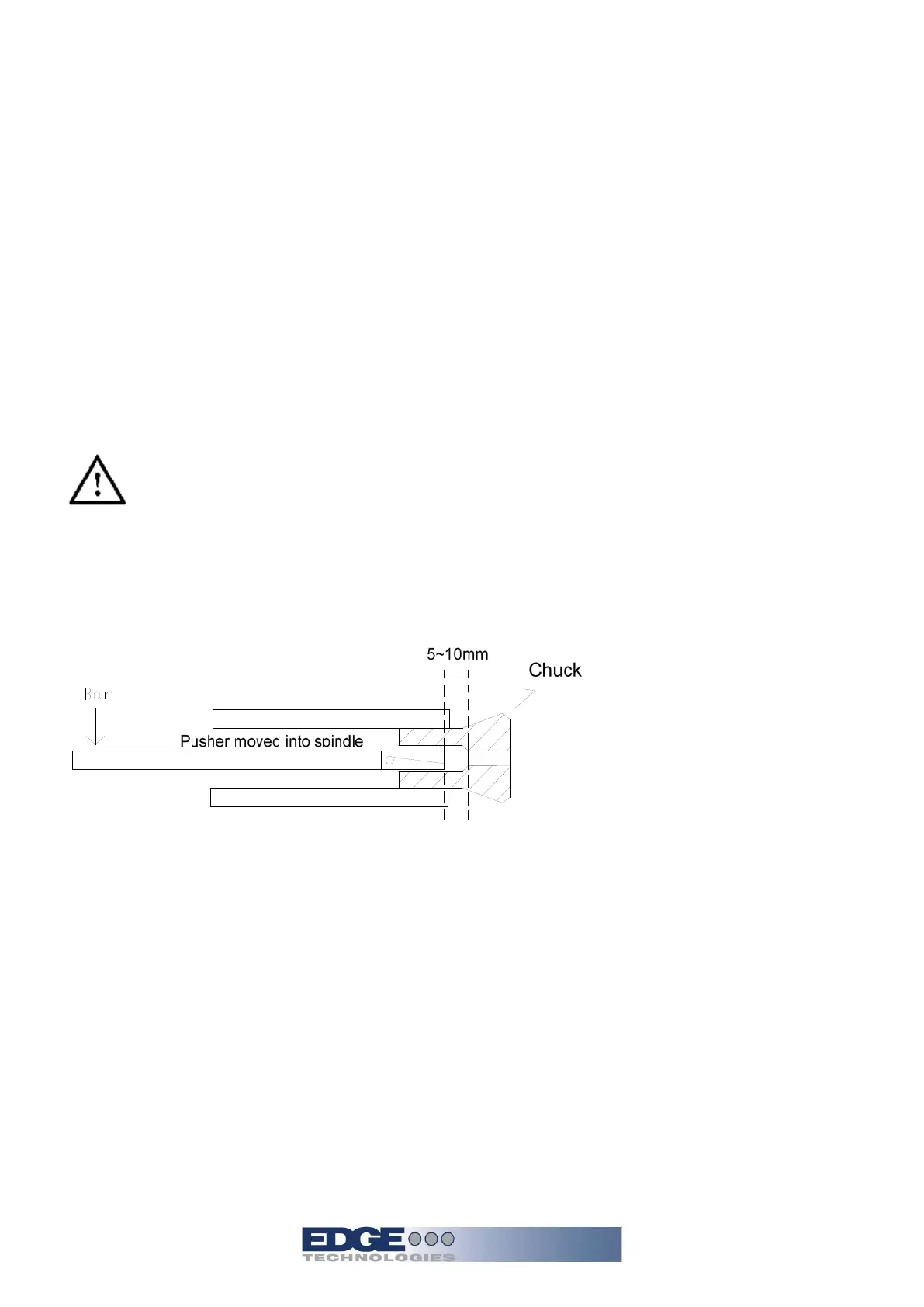 A 5 mm to 10mm clearance must be maintained between the lathe collet and bar feeder collet