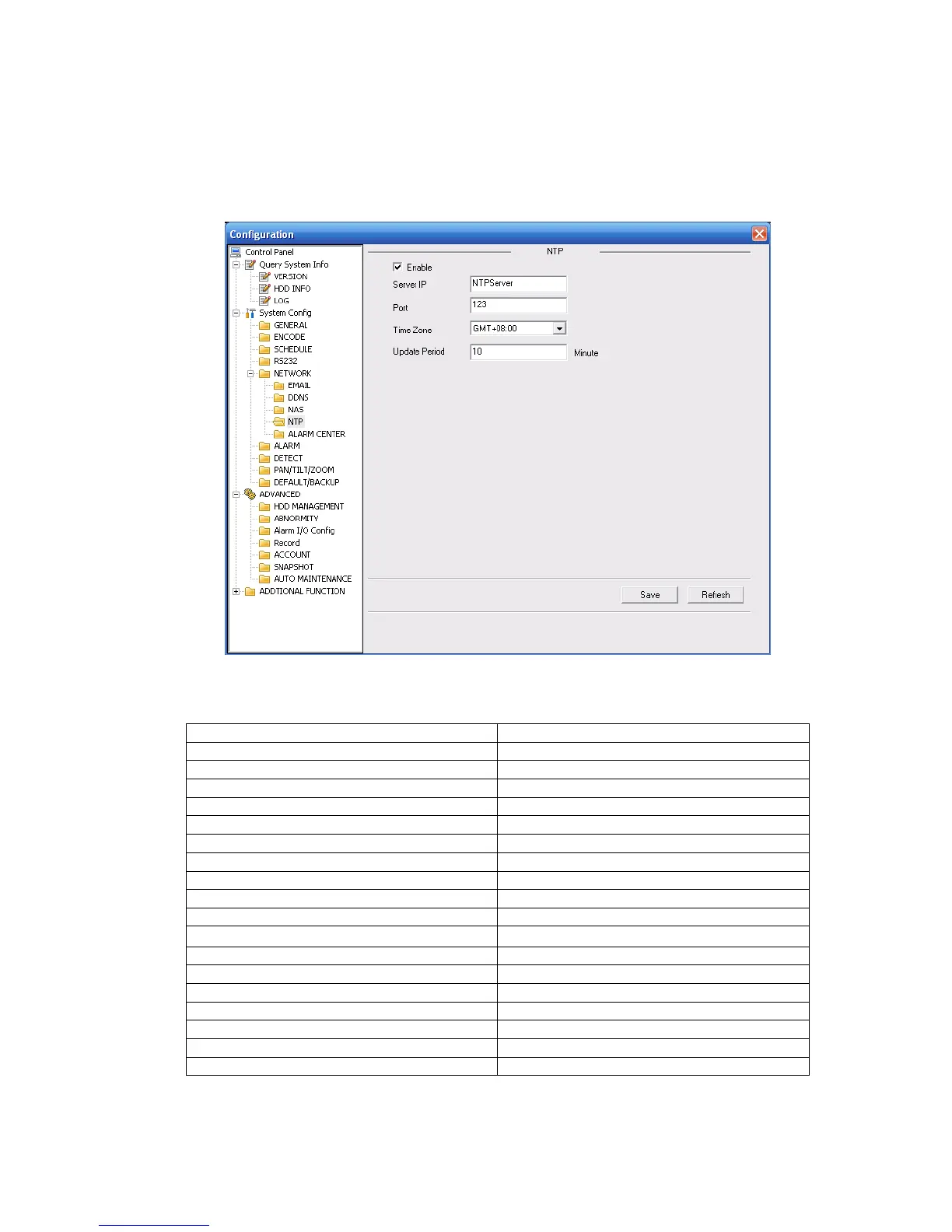 Here you can realize network time synchronization. Please enable current function and then input