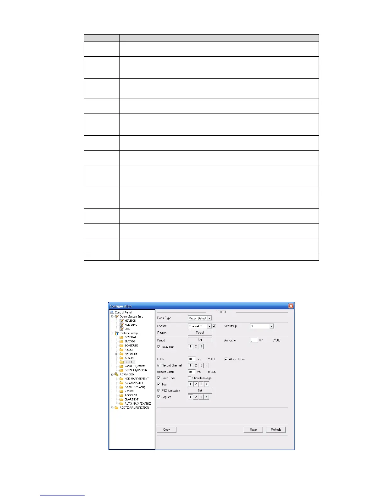 Here you can set PTZ movement when alarm occurs. Such as go to