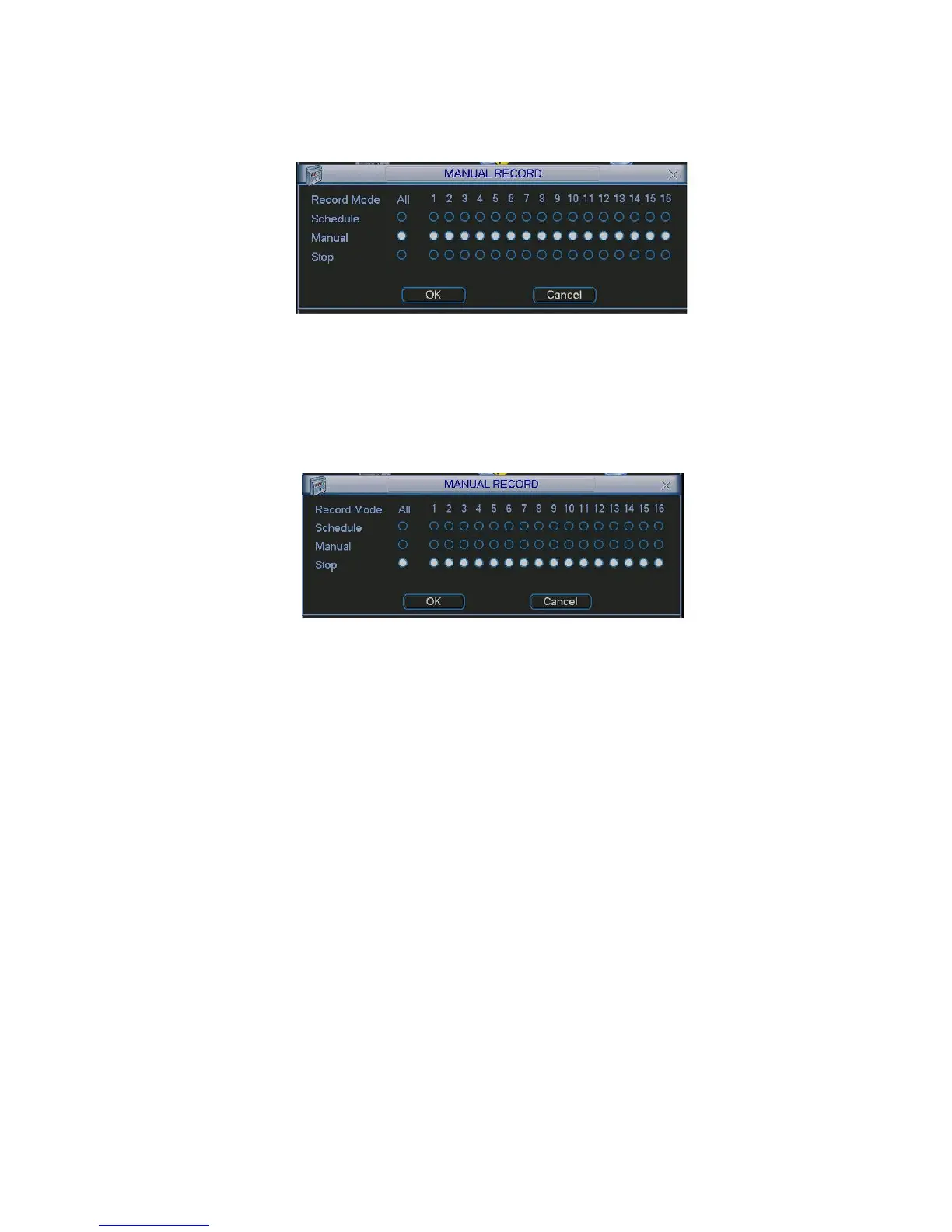 You can see indication light in front panel turns on, system begins manual record now.