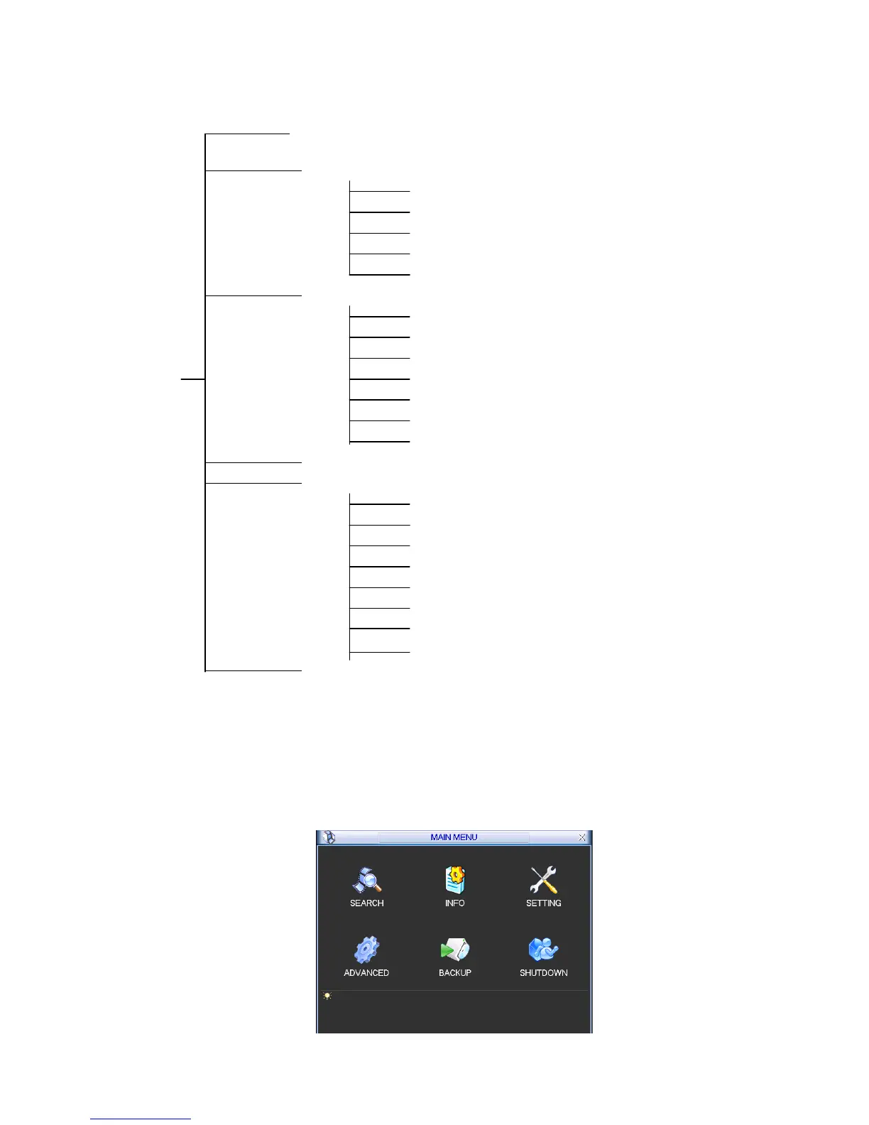 For ED-DVR12004 DVR menu tree is shown as below.