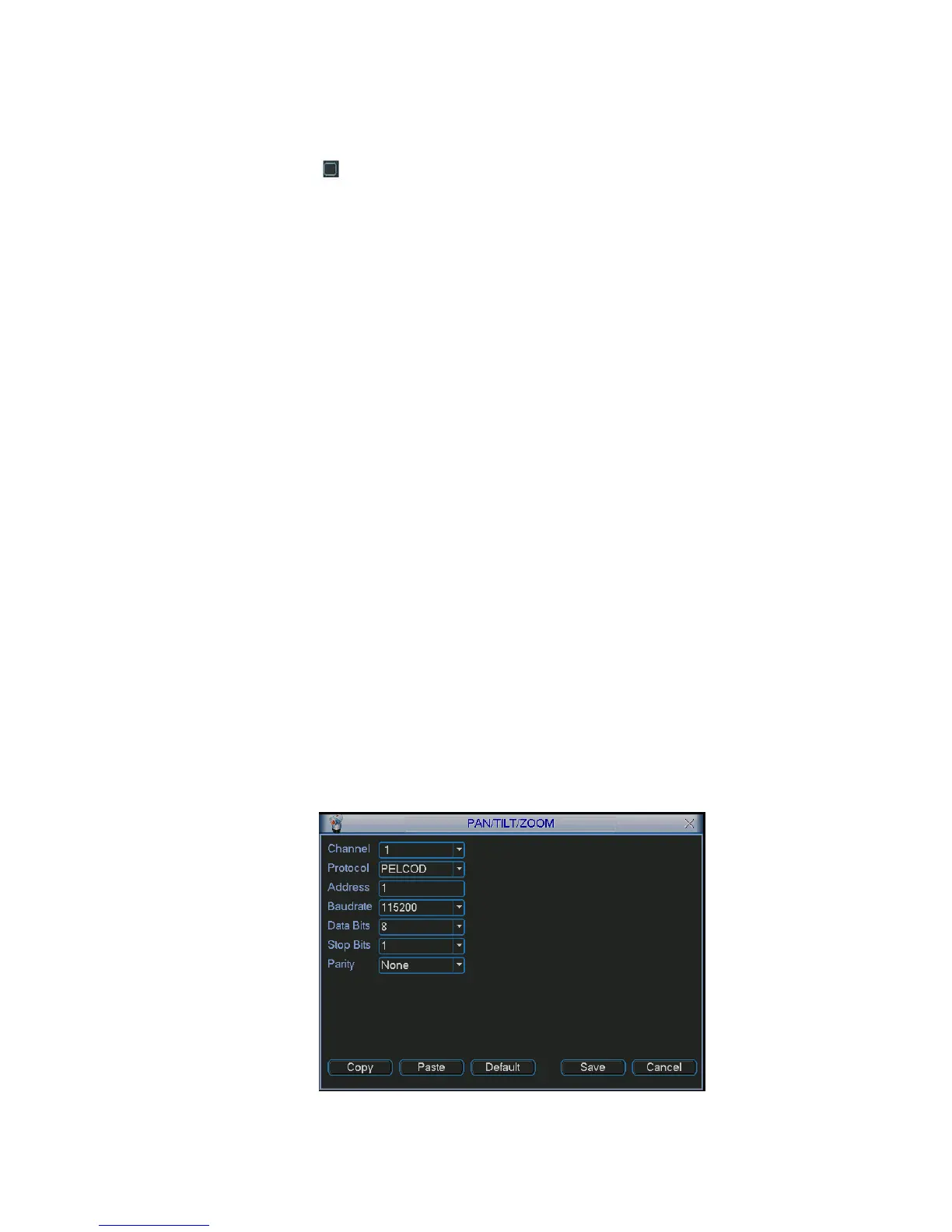 Protocol: Select corresponding PTZ protocol such as PELCOD.