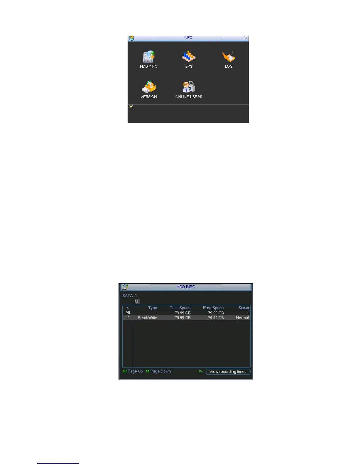 Please click AUX button or left click mouse to view HDD record time and HDD type and time.