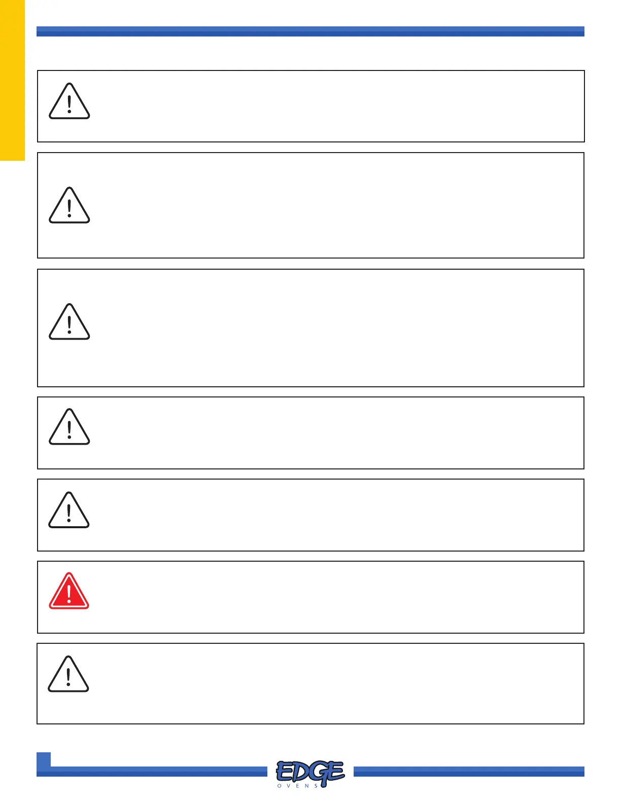 Installing any part(s) not provided by the Edge oven OEM shall void the warranty and