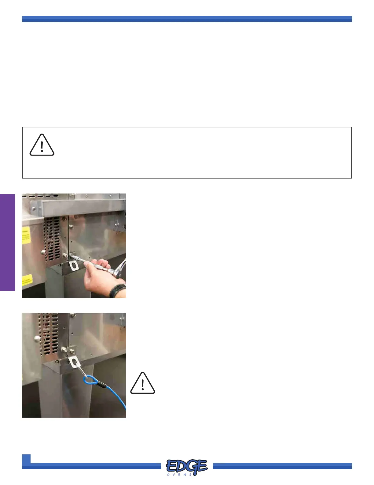 All EDGE ovens are equipped with casters. A restraint cable must be installed to limit the movement of the