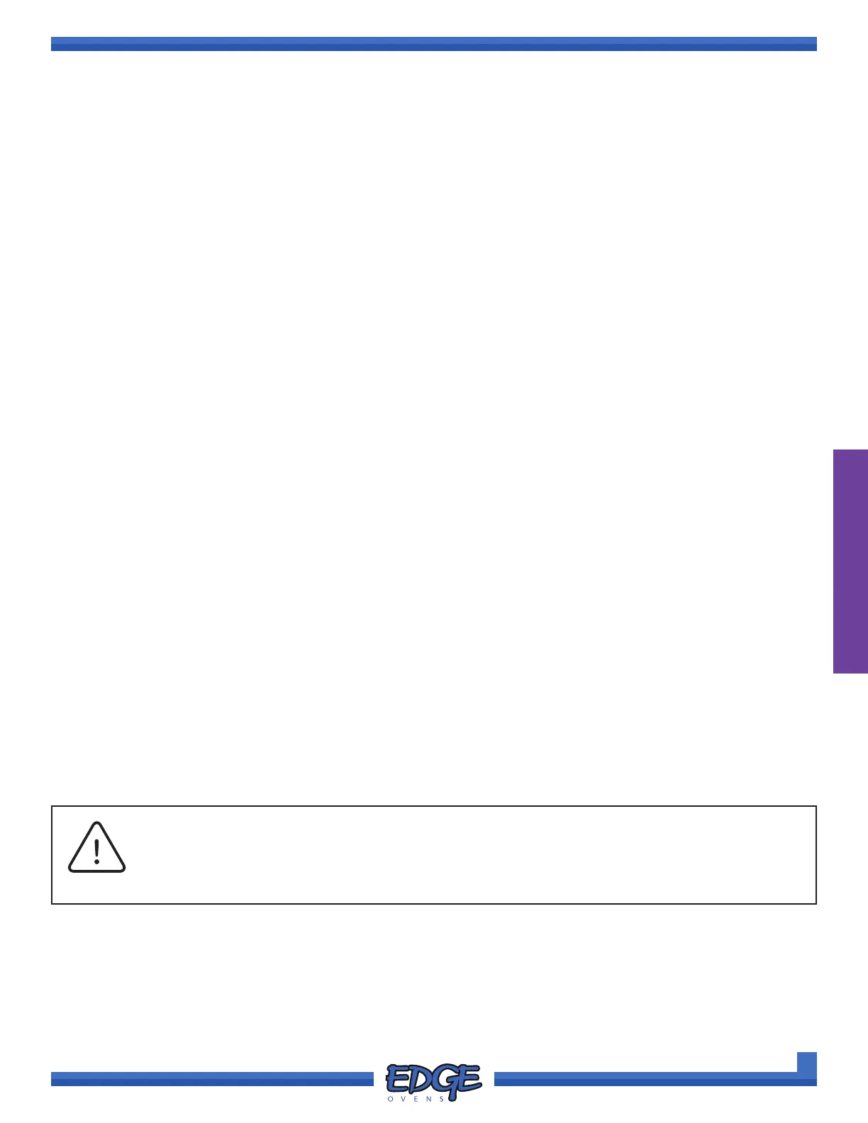 All EDGE ovens are tested at the factory. Functional operation is veried and oven adjustments and settings