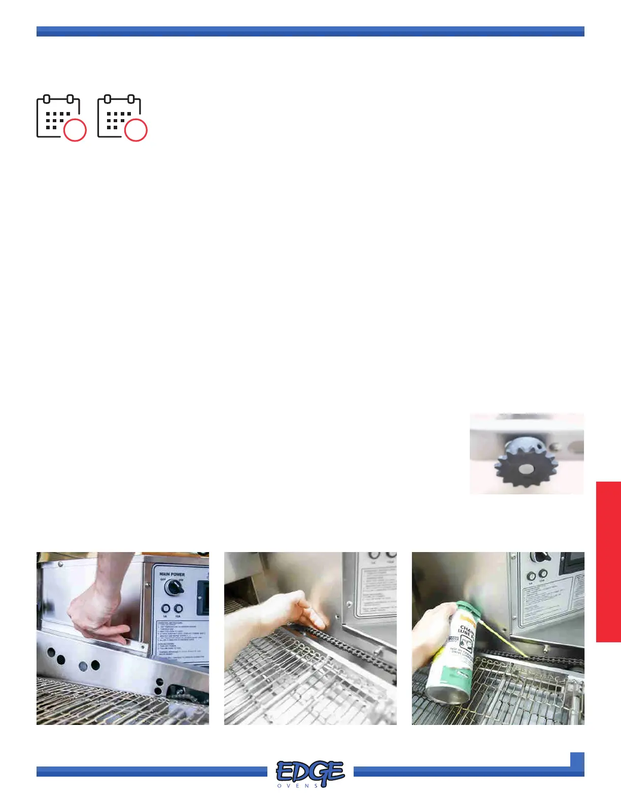 • Chain guards should remain installed at all times during oven operation. Failure to do so will leave moving