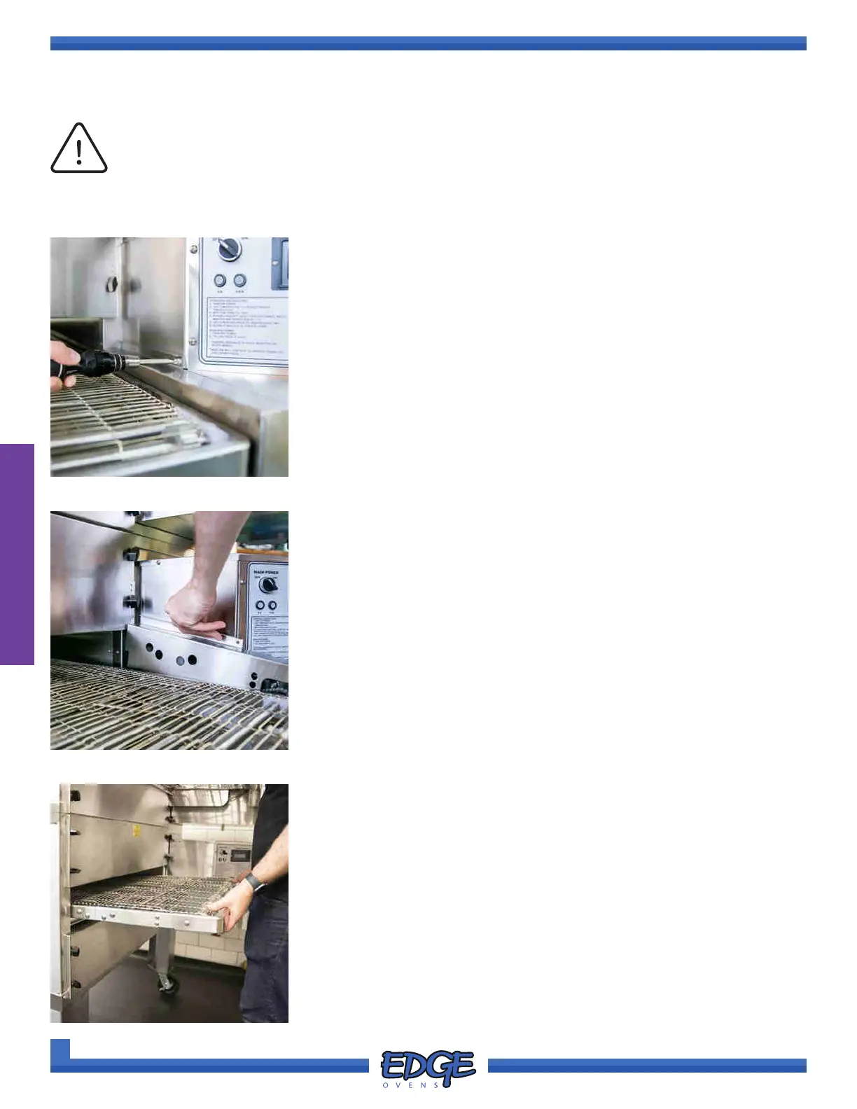 4. Lift and push the conveyor frame into the oven mouth approximately