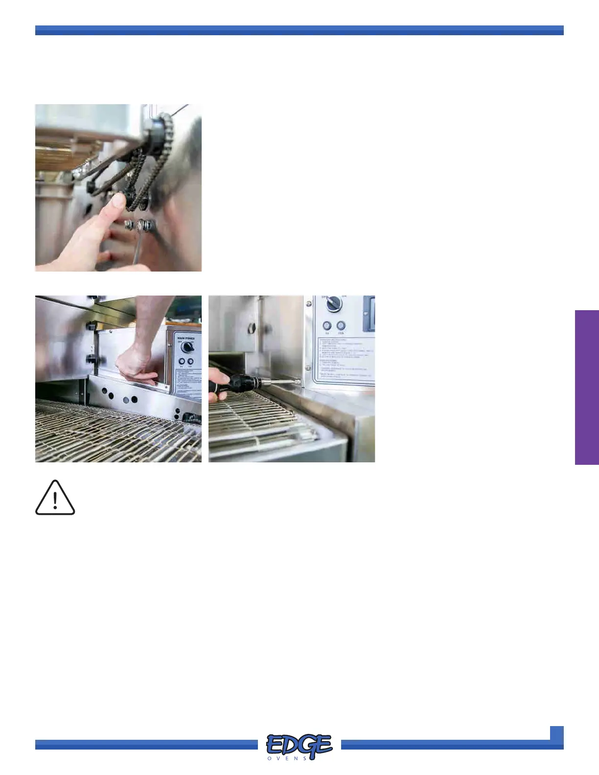 conveyor motor towards the oven mouth and tightening the previously