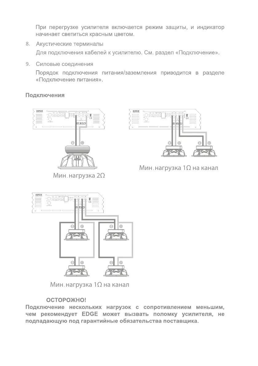 Мин.нагрузка 2Ω
