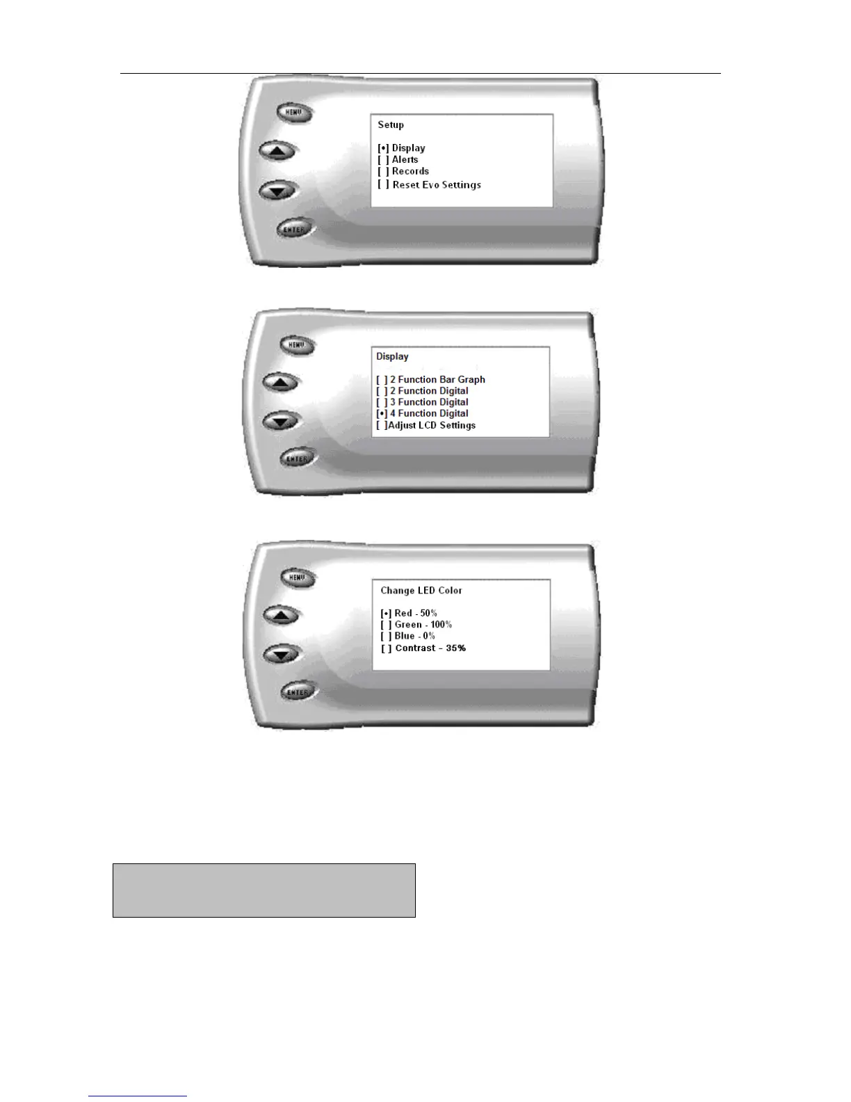 3. Select the Adjust LCD Settings option. The following screen appears: