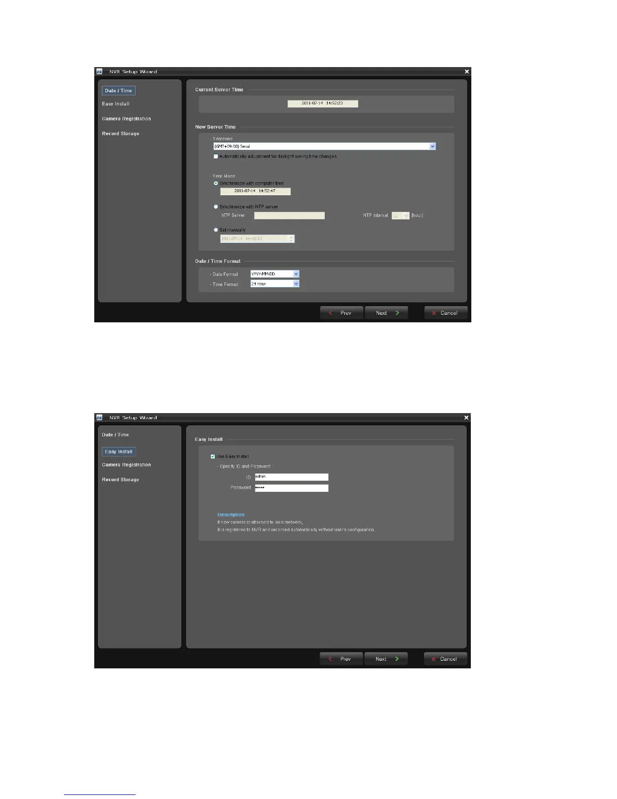 Easy Installation makes the NVR detect ONVIF based all of network cameras and register automatically.