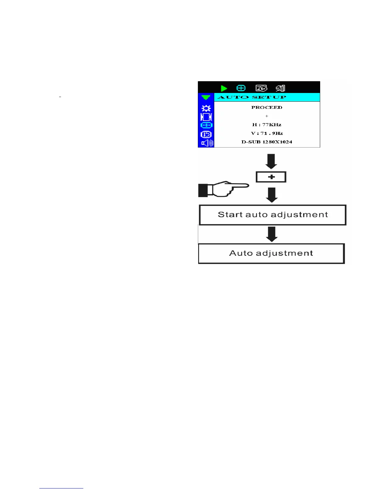 There are two ways to adjust the monitor’s screen, i.e. auto adjustment and manual adjustment.