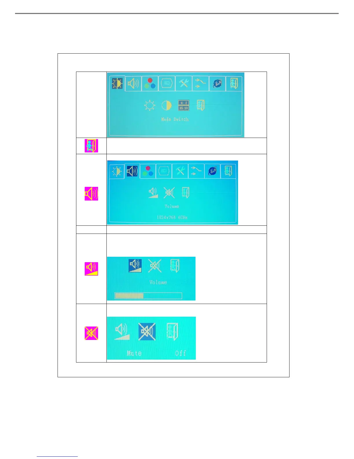 Press “+or - key to adjust the volume, and press “menu” key to