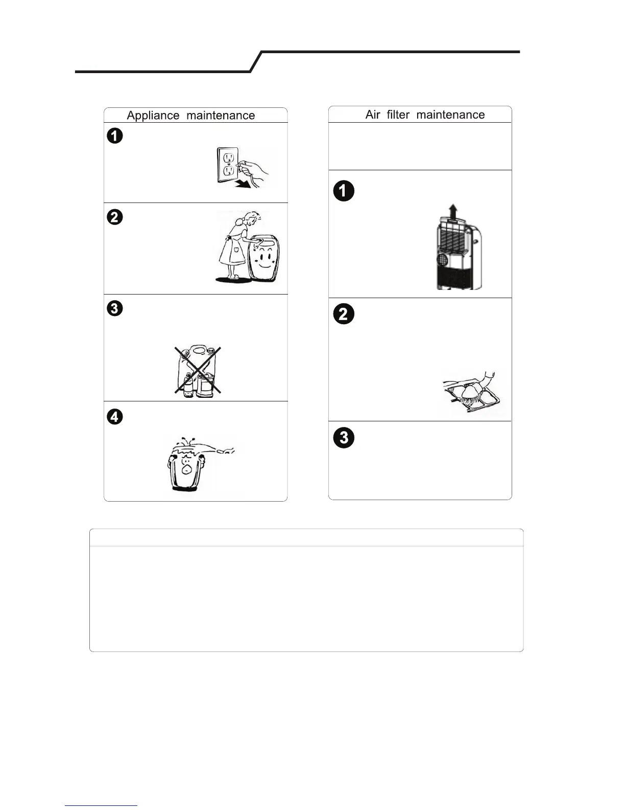1. If you are not going to use this unit for a long time, be sure to drain the water from the