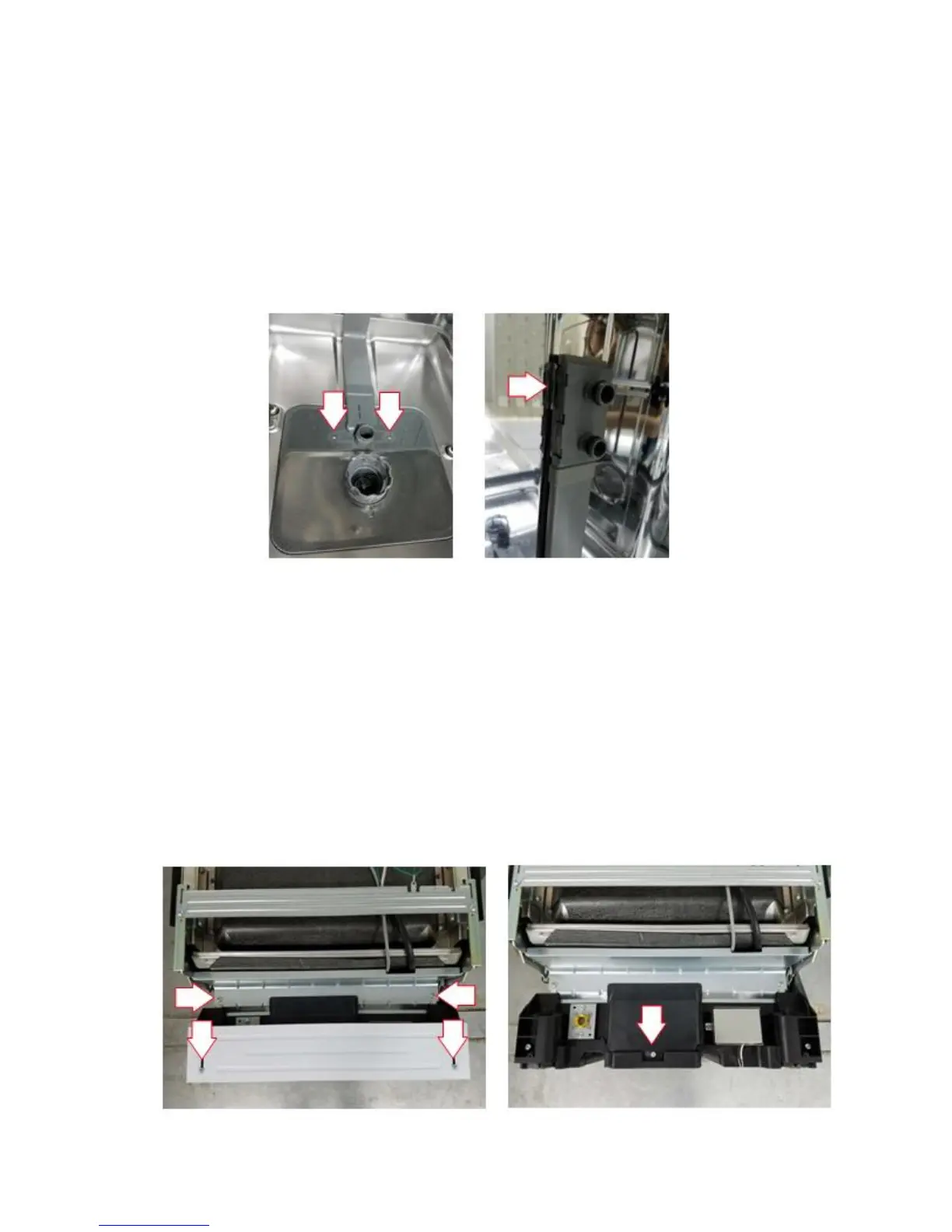 2. Open the door, remove the spray arm and the 2 screws on the lower spray panel.