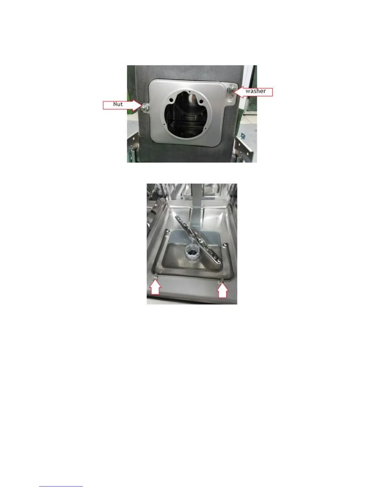 7. Remove the two nuts and washers that attach the heating element to the bottom