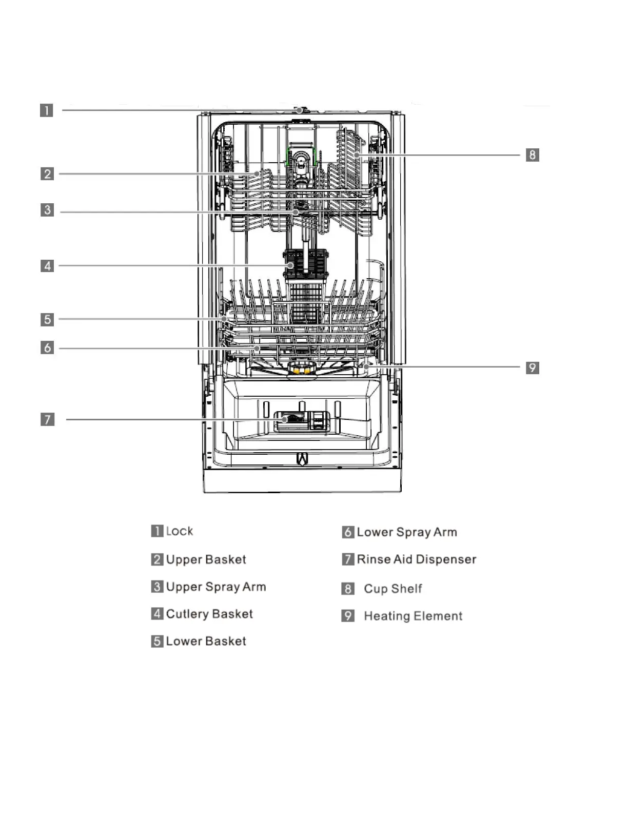 EdgeStar BIDW1802SS - Dishwasher Parts Identification; Front View with Door Open
