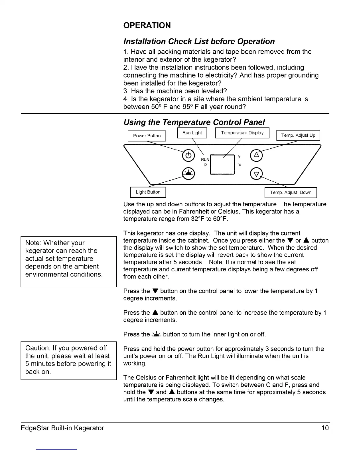 I Power Button I I RunLight I I Temperature Display