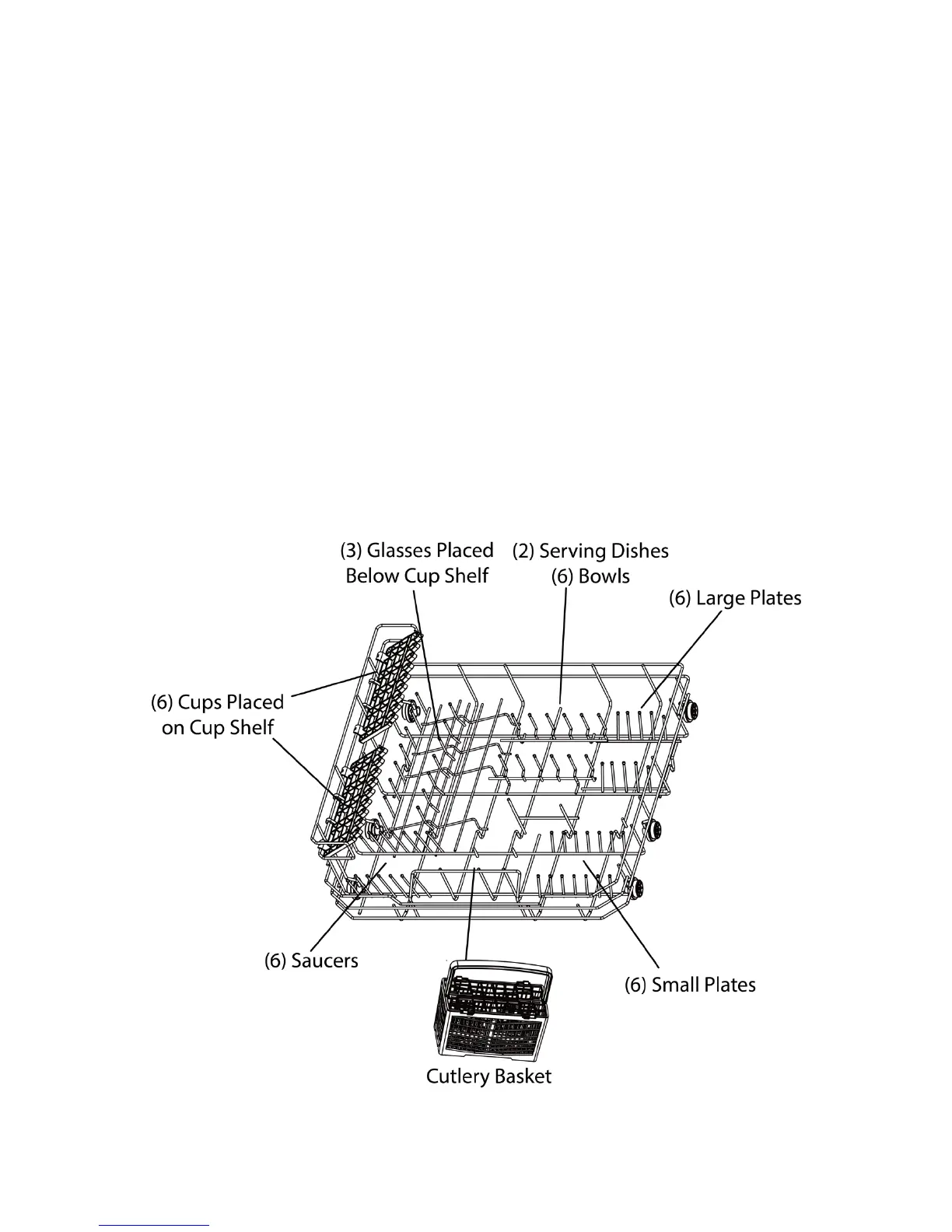 This unit is optimized for holding six (6) place settings including: