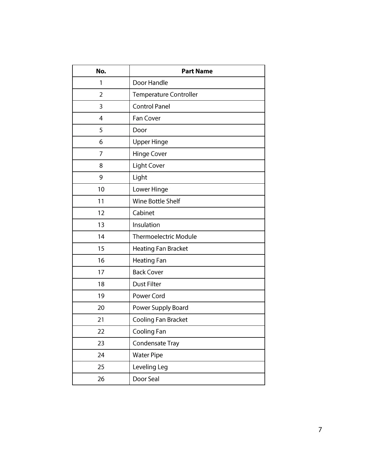 EdgeStar TWR215ESS - Parts List