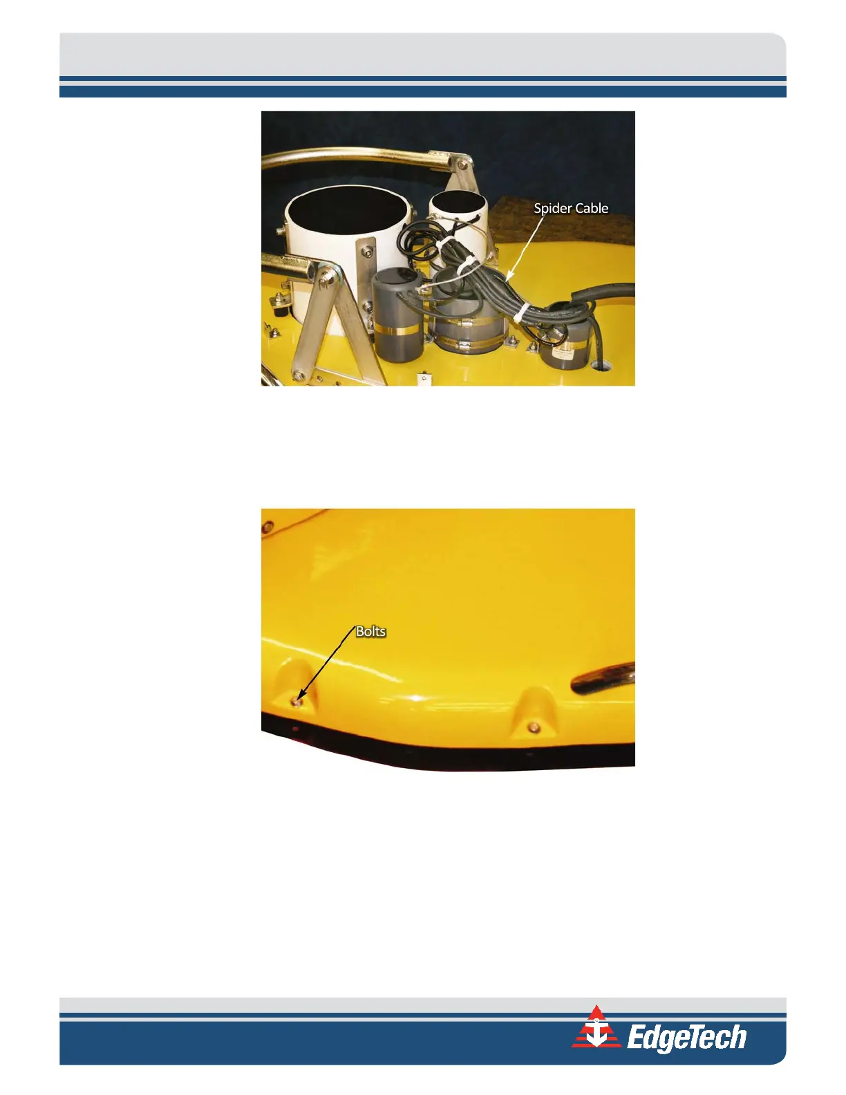 7. Lift the top cover off, turn it over, and disconnect the spider cable from the hydrophones and the