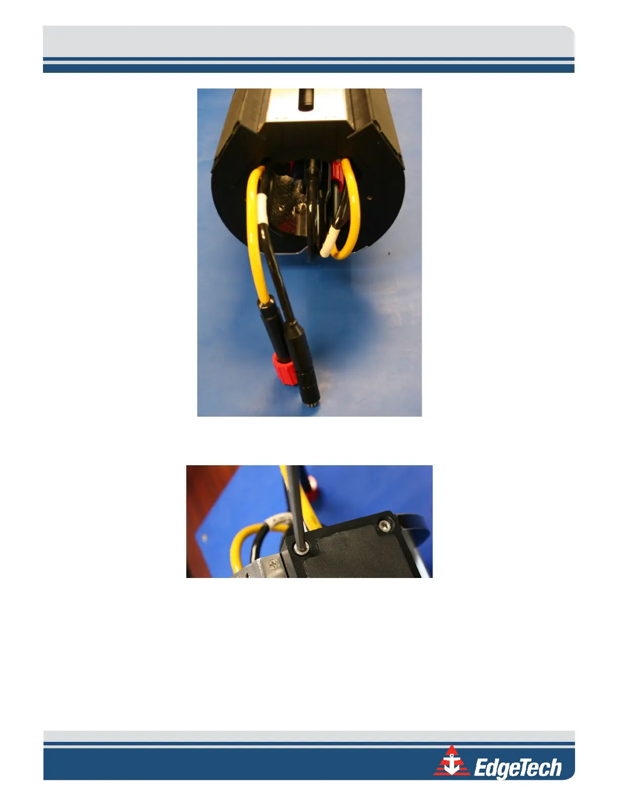 Edgetech 6205S - Figure 5-10: Remove the [6] Cap Screws; Figure 5-9: the Disconnected Bathymetry and Side Scan Sonar Cables