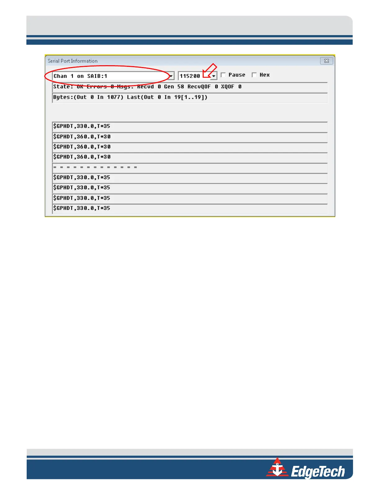 Edgetech 6205S - Figure 6-4: Serial Port Information Window