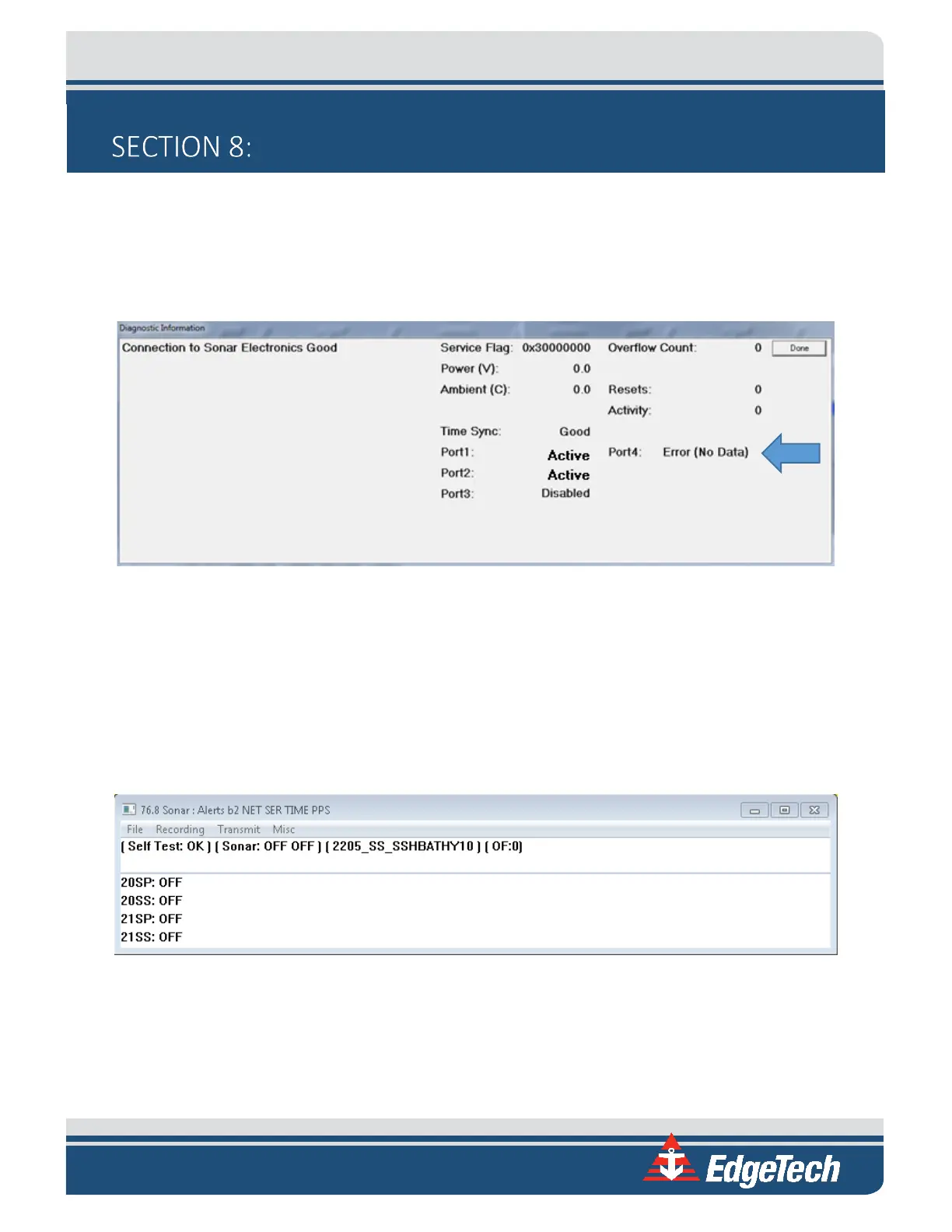 show a Port 4: Error on its Diagnostic Window, indicating that no sound velocity measurements are being