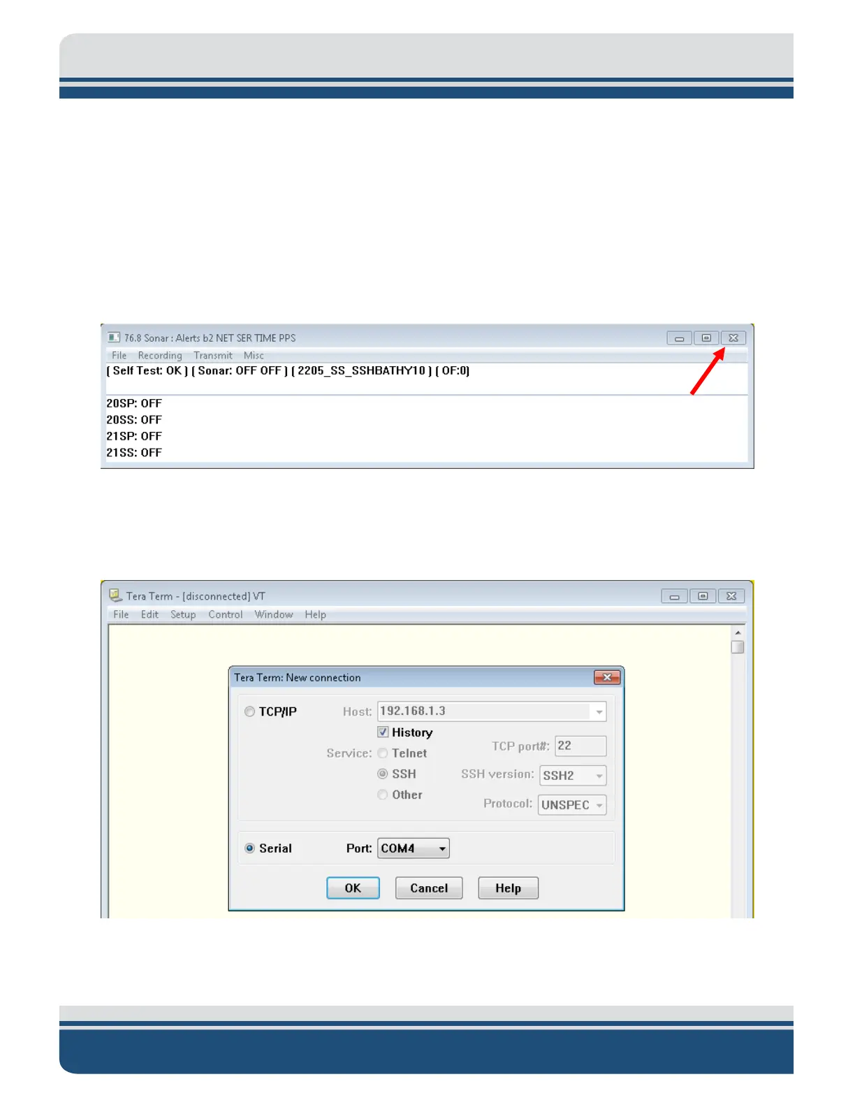 8. Closeout of Sonar.exe by clicking on the ‘X’ in the top right corner, as shown in F