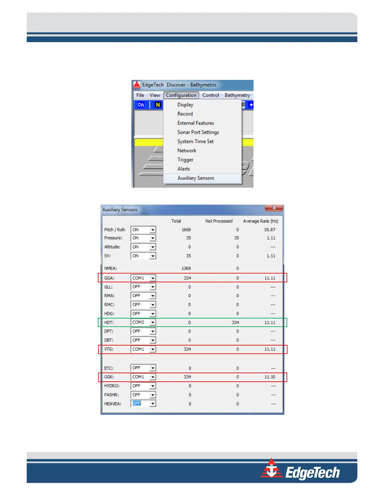 Edgetech 6205S - Figure 8-7: Configuration Menu; Figure 8-8: Auxiliary Sensors