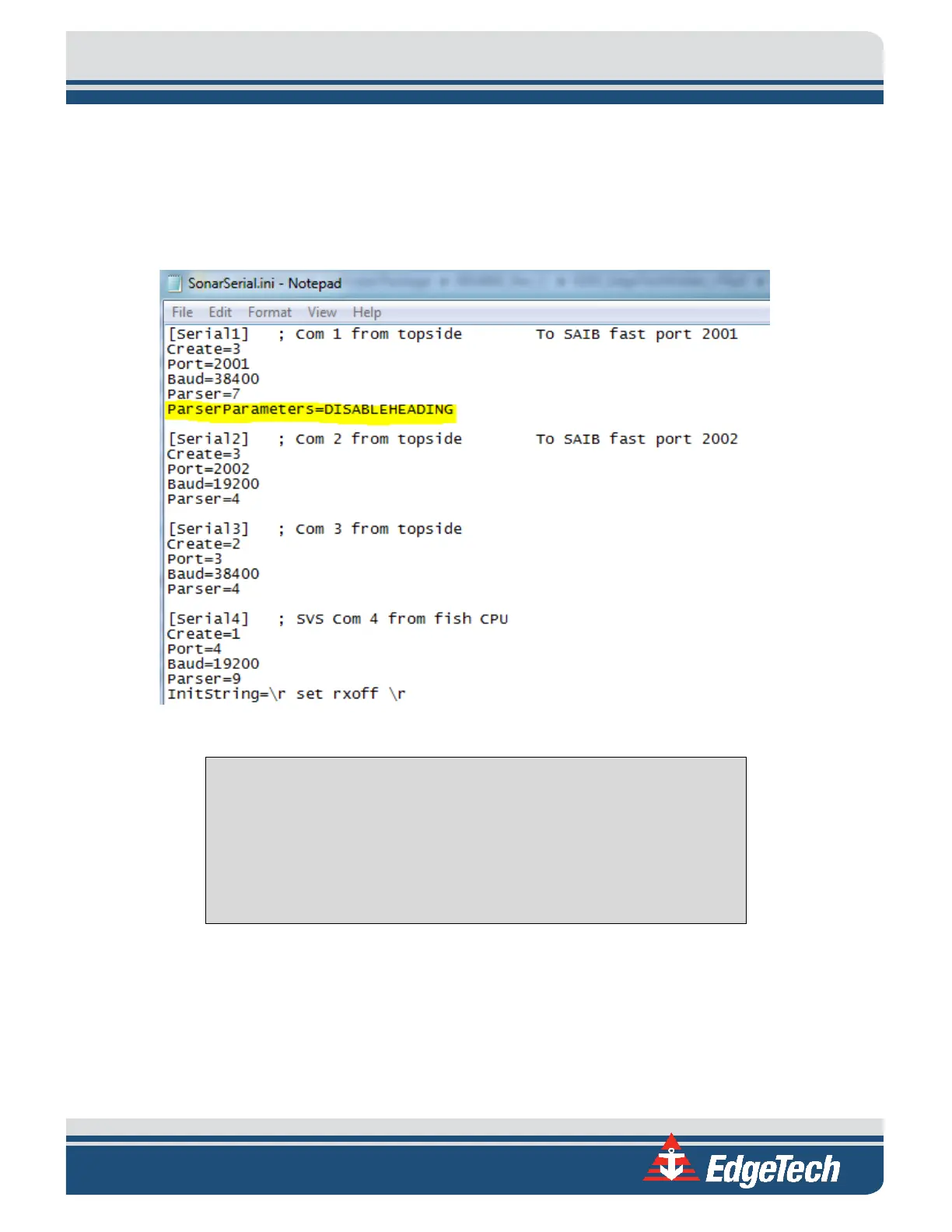 an OCTANS message at a baud rate of 38400, then SonarSerial.ini should be manipulated to