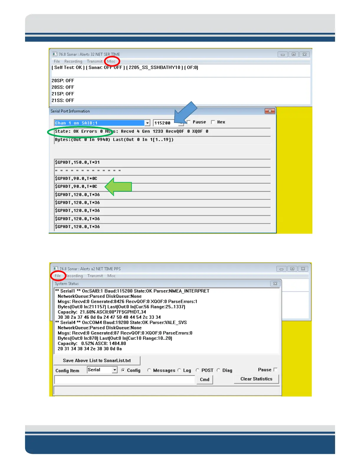 Edgetech 6205S - Figure 8-16: Checking Serial Port Information; Figure 8-17: Checking Sensor Status