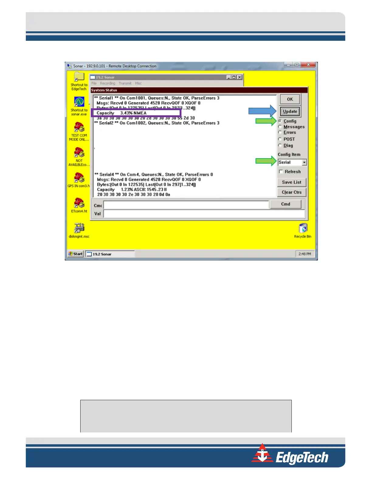 13. Select Serial and then click on the Update button several times (blue arrow in F