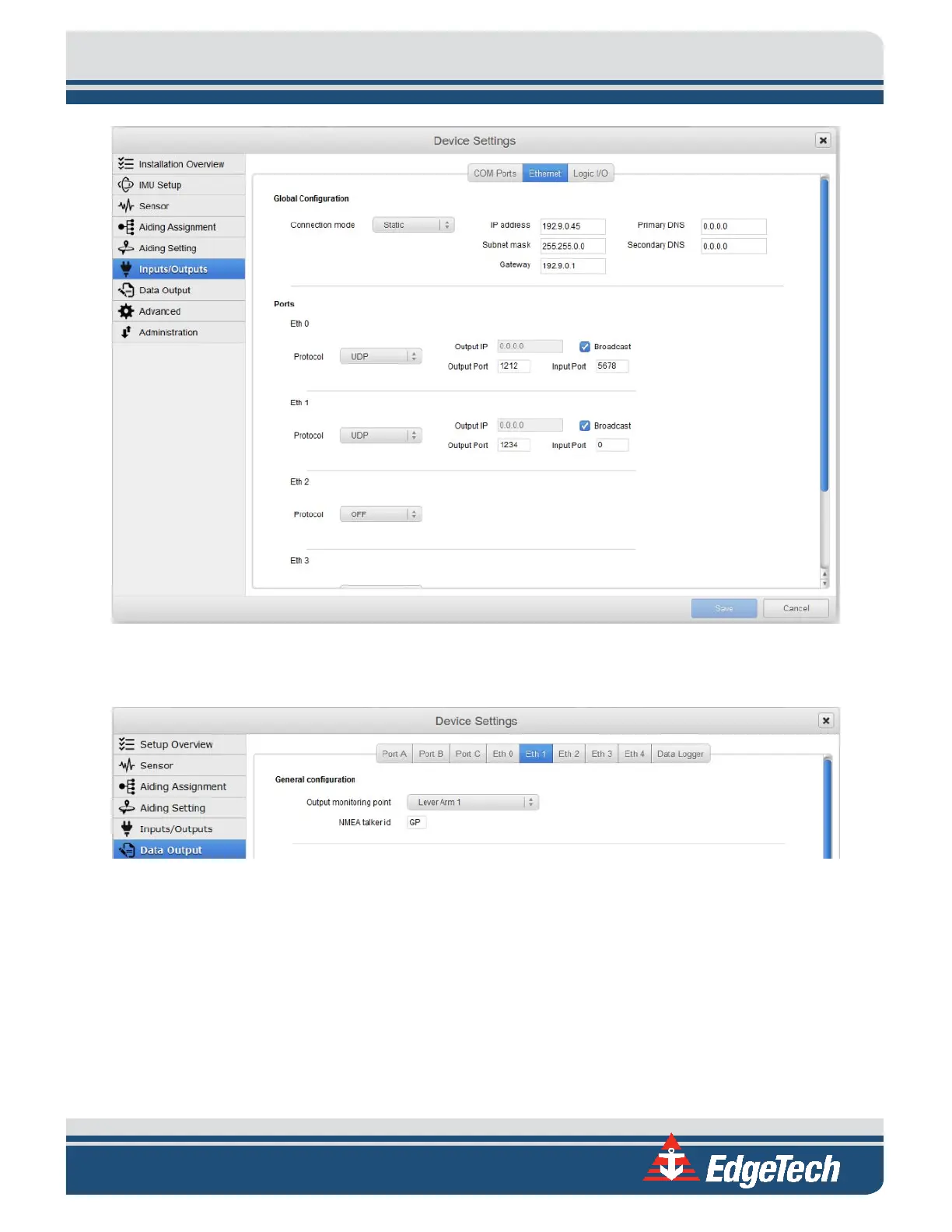 Edgetech 6205S - Figure 8-28: UDP Broadcast Settings Example; Figure 8-29: Eth1 Data Output