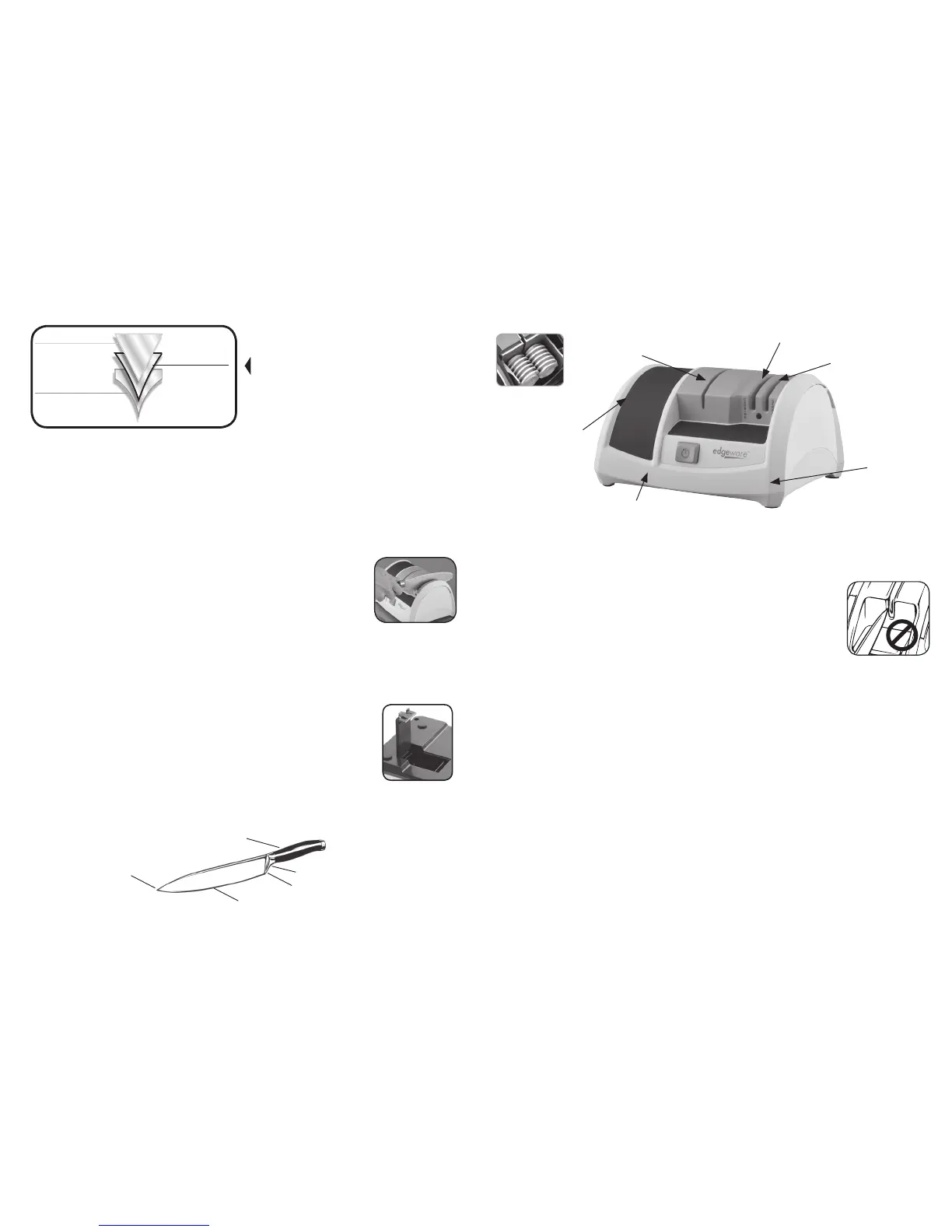 • Ne poussez jamais la lame du couteau dans les roues d’affûtage.