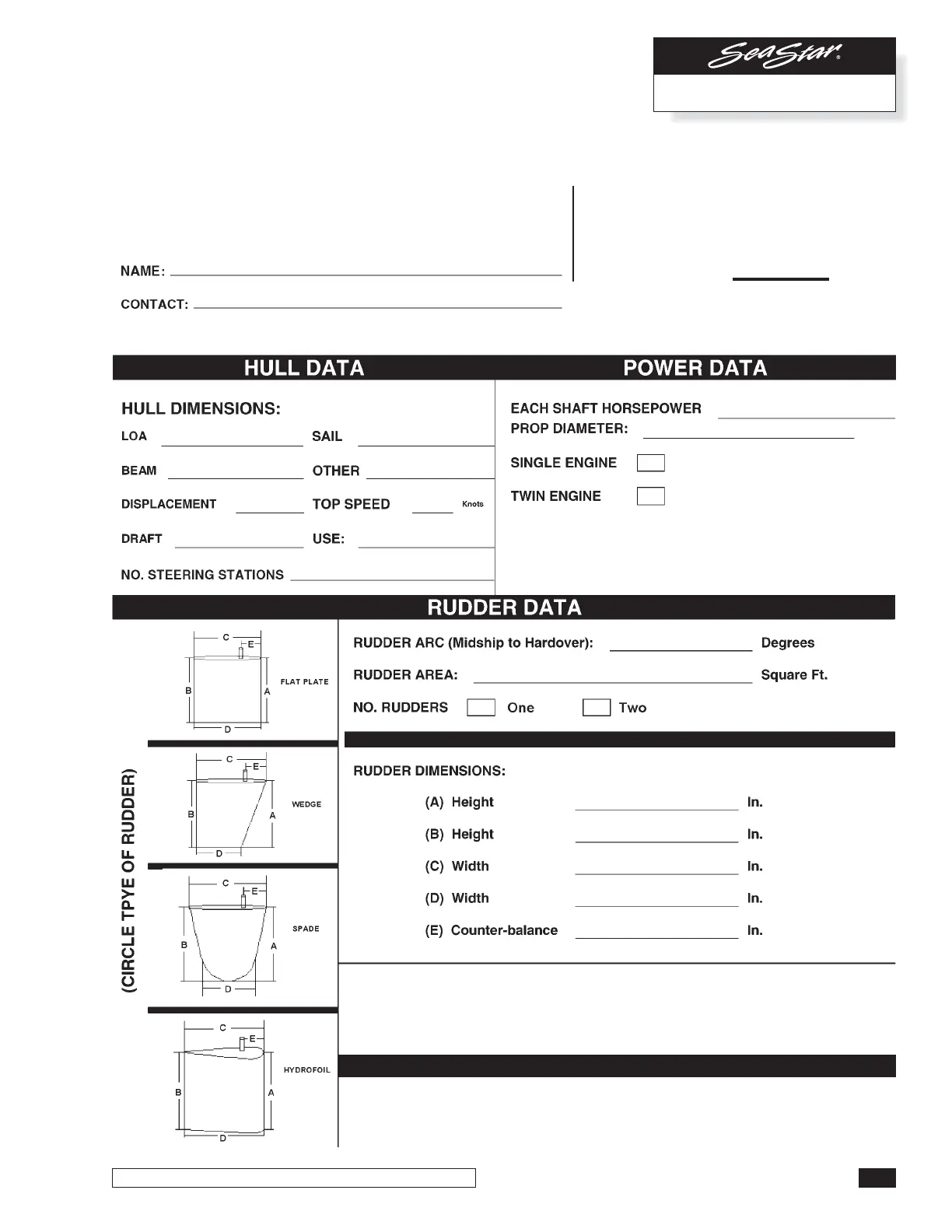 Edgewater Networks 245CC - Steering Torque Data Sheet; HULL DATA; POWER DATA; RUDDER DATA