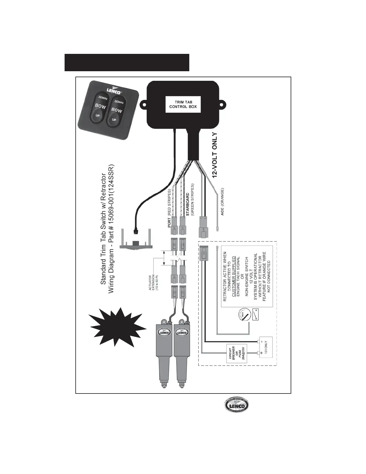 Failure to wire the trim tab retractor as shown will cause