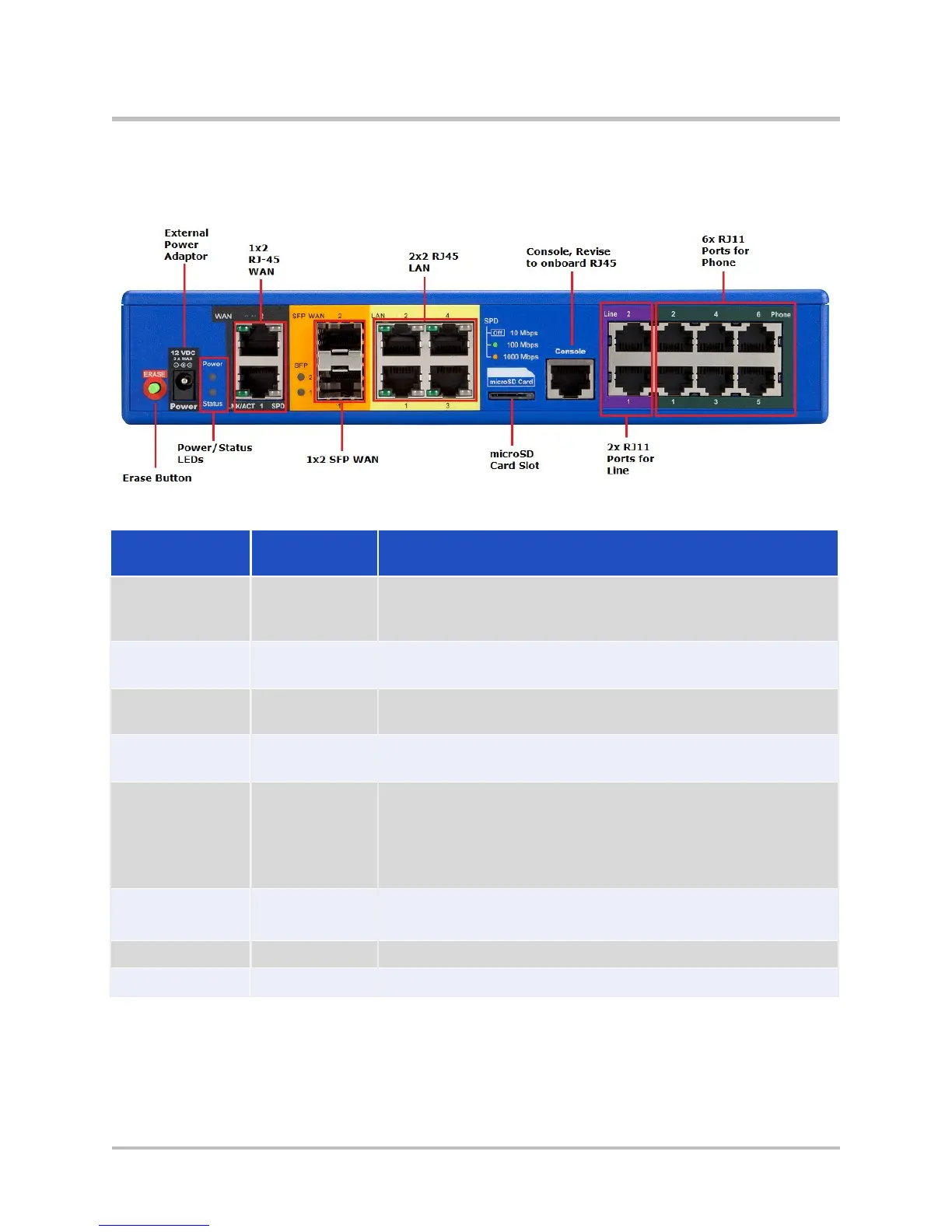 6 x RJ-11 ports for 6 FXS channels