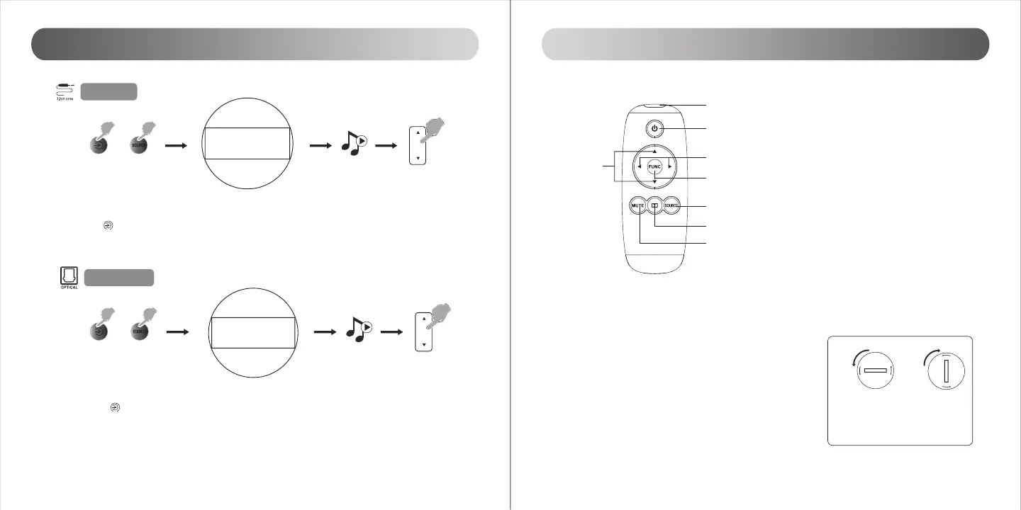 ⑥ Audio source selector(OPT1-OPT2-OPT3-AUX-OPT1 )