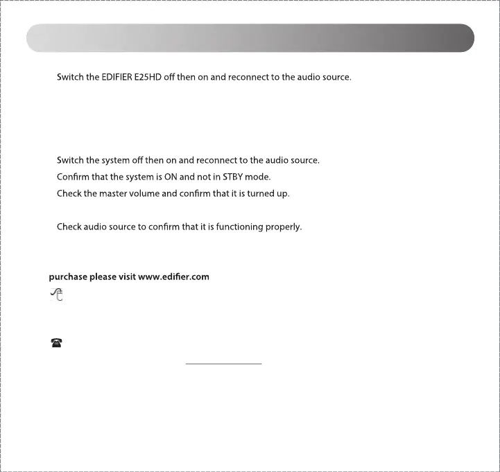 world. please visit our website at: www.edifier.com, or email EDIFIER Support for further assistance