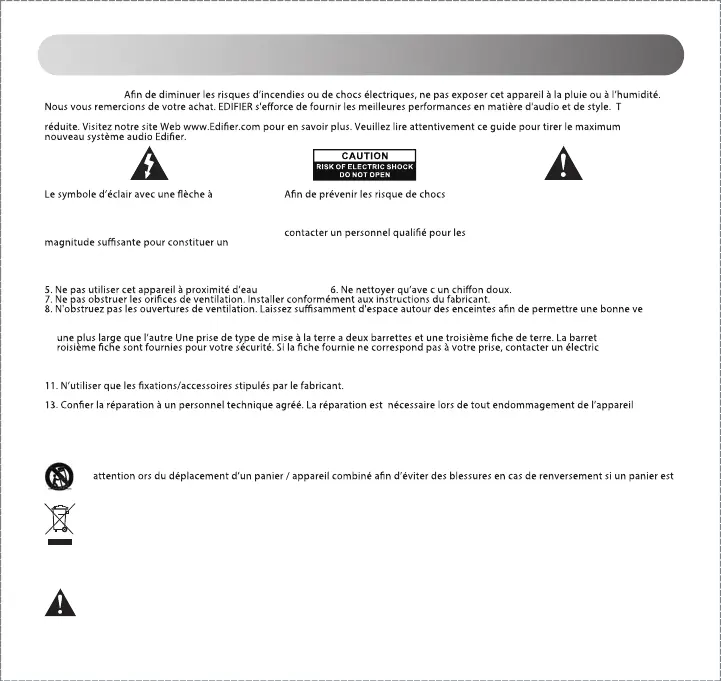 12. Débrancher cet appareil lors d’orages ou lorsqu’inutilisé pendant de longues périodes.