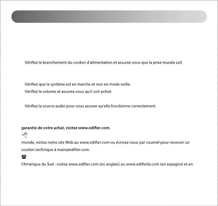 Pour toute autre question ou préoccupation concernant les produits EDIFIER partout dans le