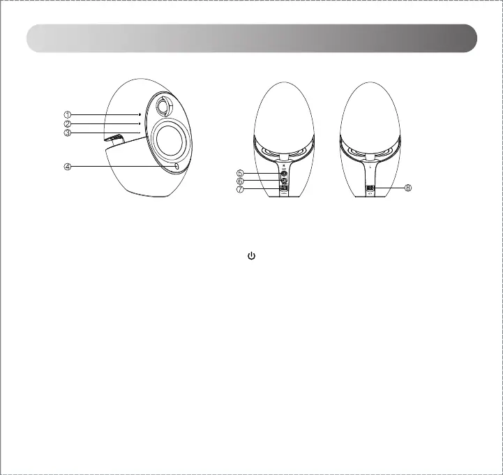 4. Indicador de função (azul: Bluetooth; verde: AUX; vermelho: Ótica)