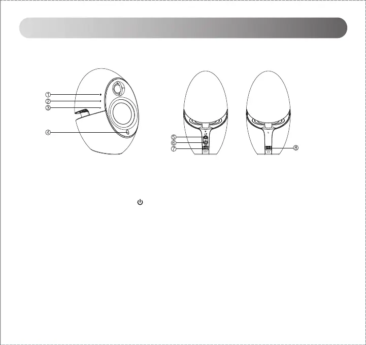 4. LED indicator (green: AUX mode; red: Optical mode; blue: Bluetooth mode.)