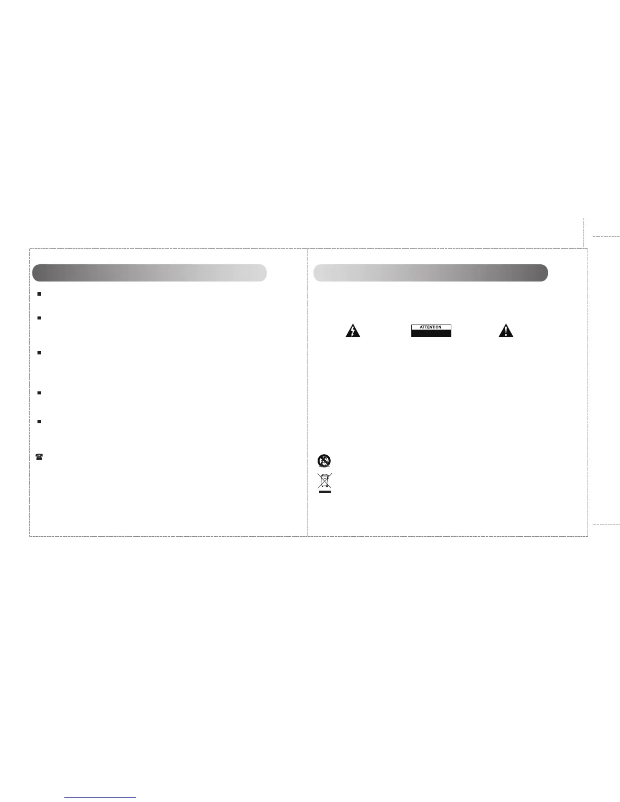 AVERTISSEMENT: Afin de diminuer les risques d’incendies ou de chocs électriques, ne pas exposer cet appareil à la