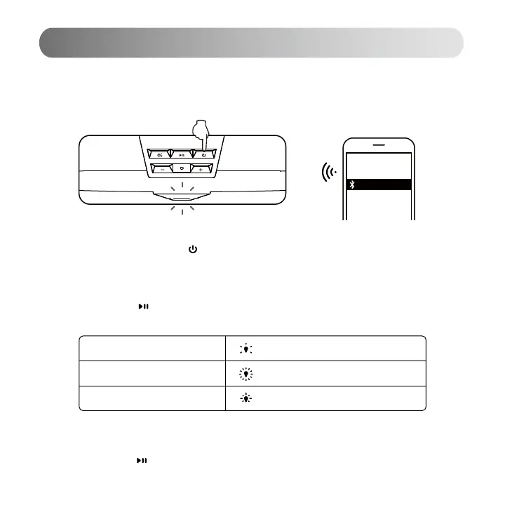 1. Allumez et appuyez sur le bouton « » pour basculer sur l'entrée Bluetooth. Le voyant LED bleu clignotera