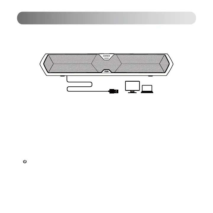 1.USBケーブルをスピーカーからコンピューターのUSBポートに挿入すると、スピーカーは自動