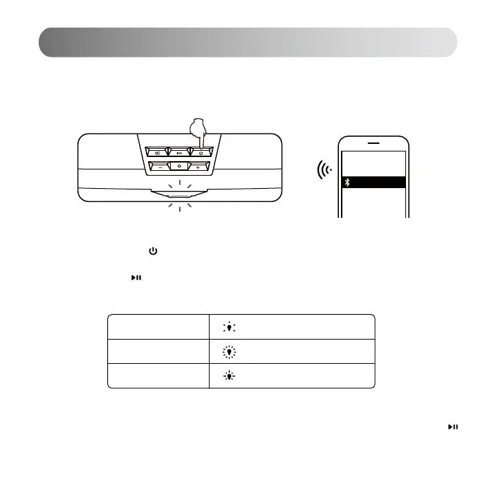 1. Power on and press the " " button to switch to Bluetooth input. Blue LED will blink rapidly.