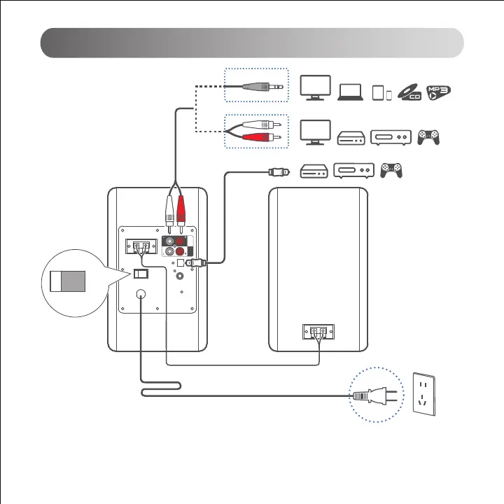 1. Branchez les haut-parleurs grâce au câble de raccordement d’enceinte inclus